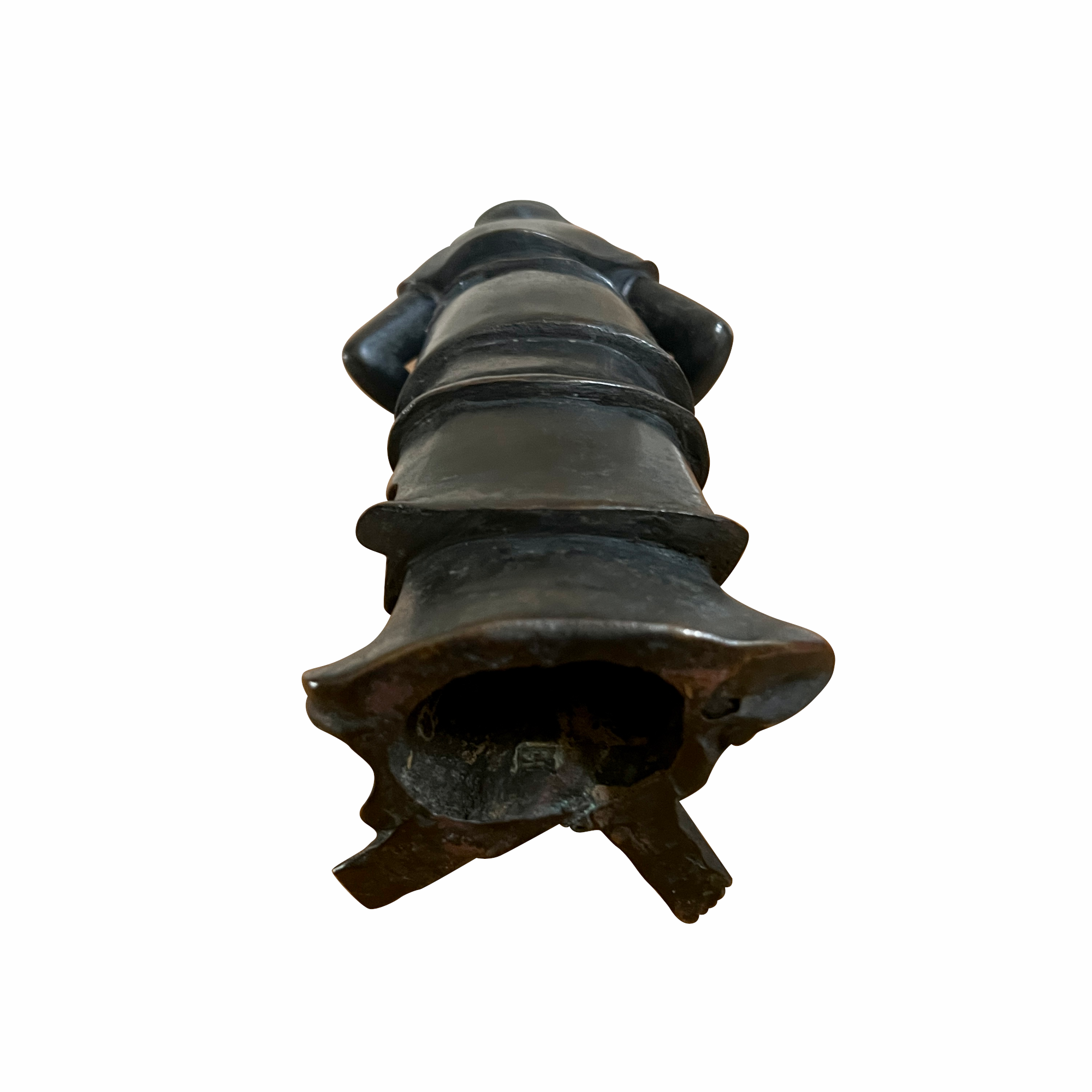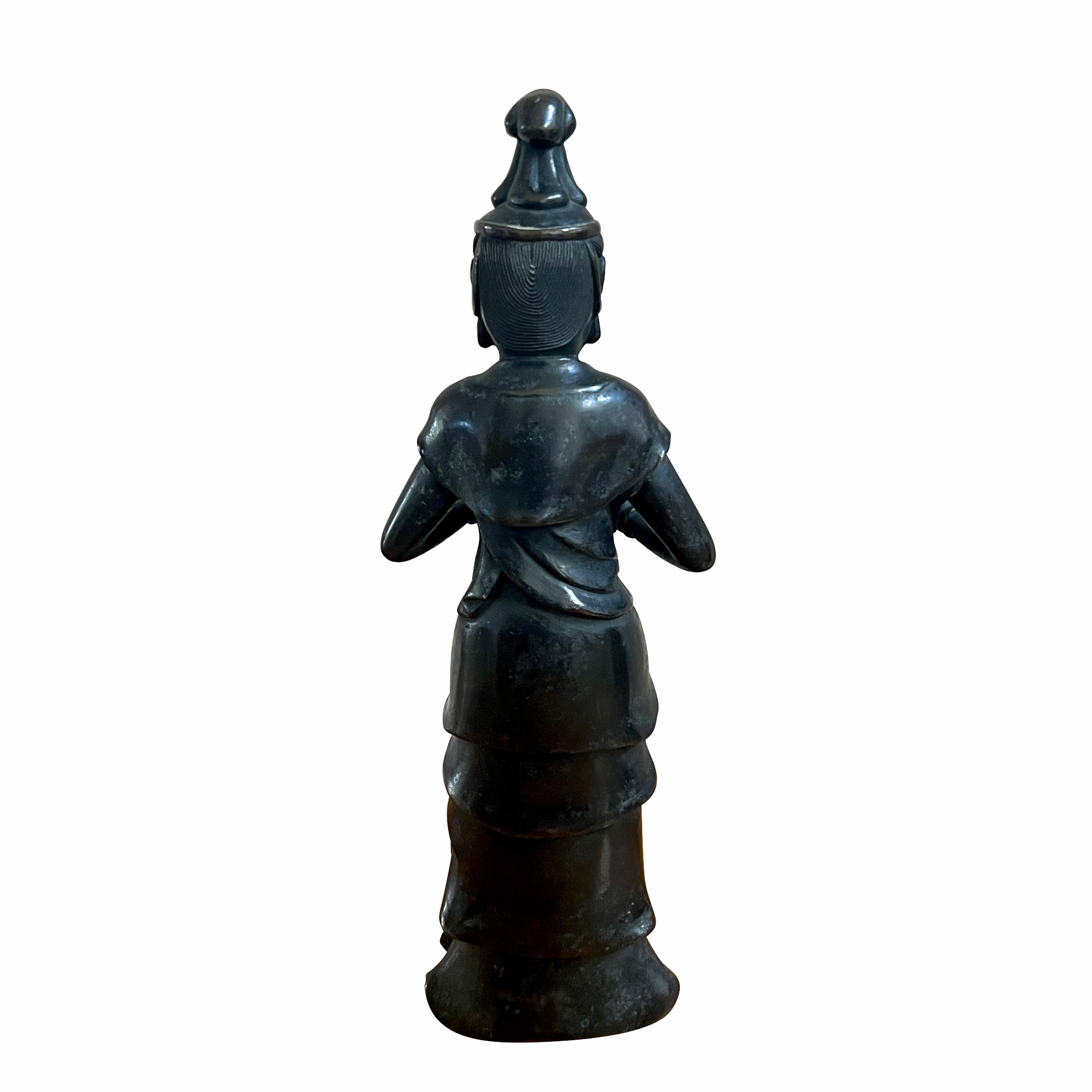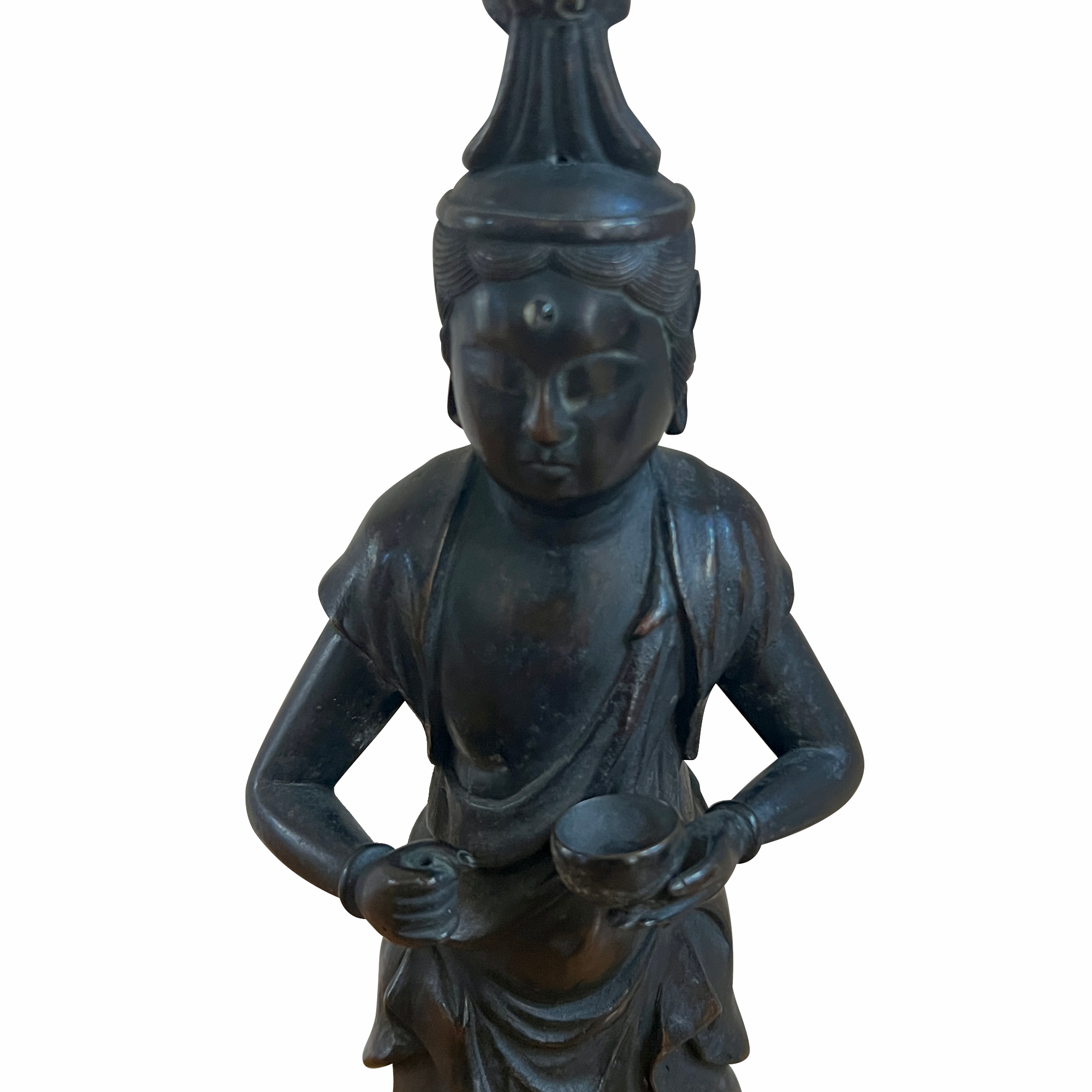 A fine Japanese Eighteenth Century bronze figure. The figure is finely cast and has a deep dark patina. A small cabochon crystal is set in the forehead. The condition is very good.
