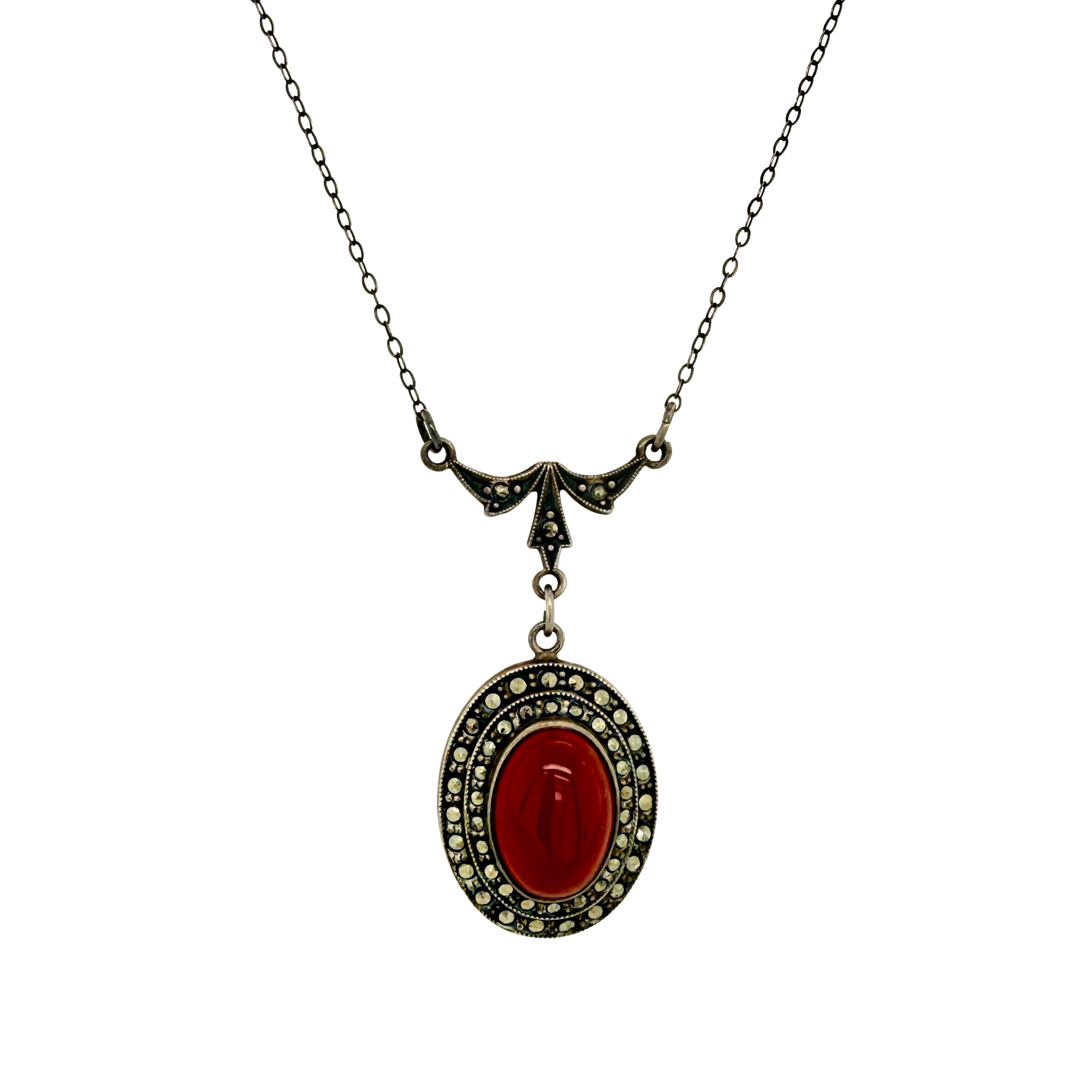 Art Deco Sterling Silver Carnelian & Marcasite Necklace Art Deco Sterling Silver Carnelian & Marcasite Necklace Art Deco Sterling Silver Carnelian & Marcasite Necklace Art Deco Sterling Silver Carnelian & Marcasite Necklace