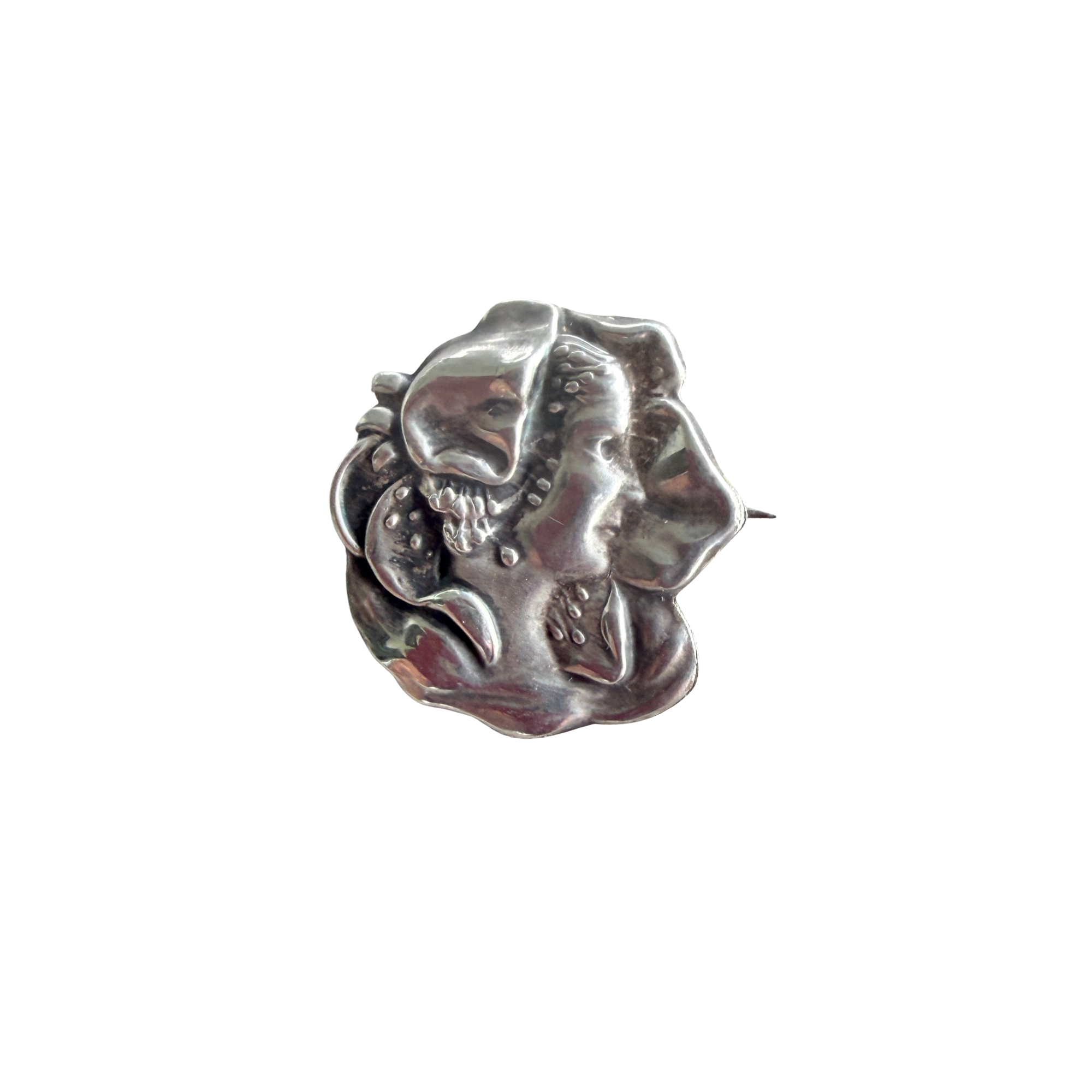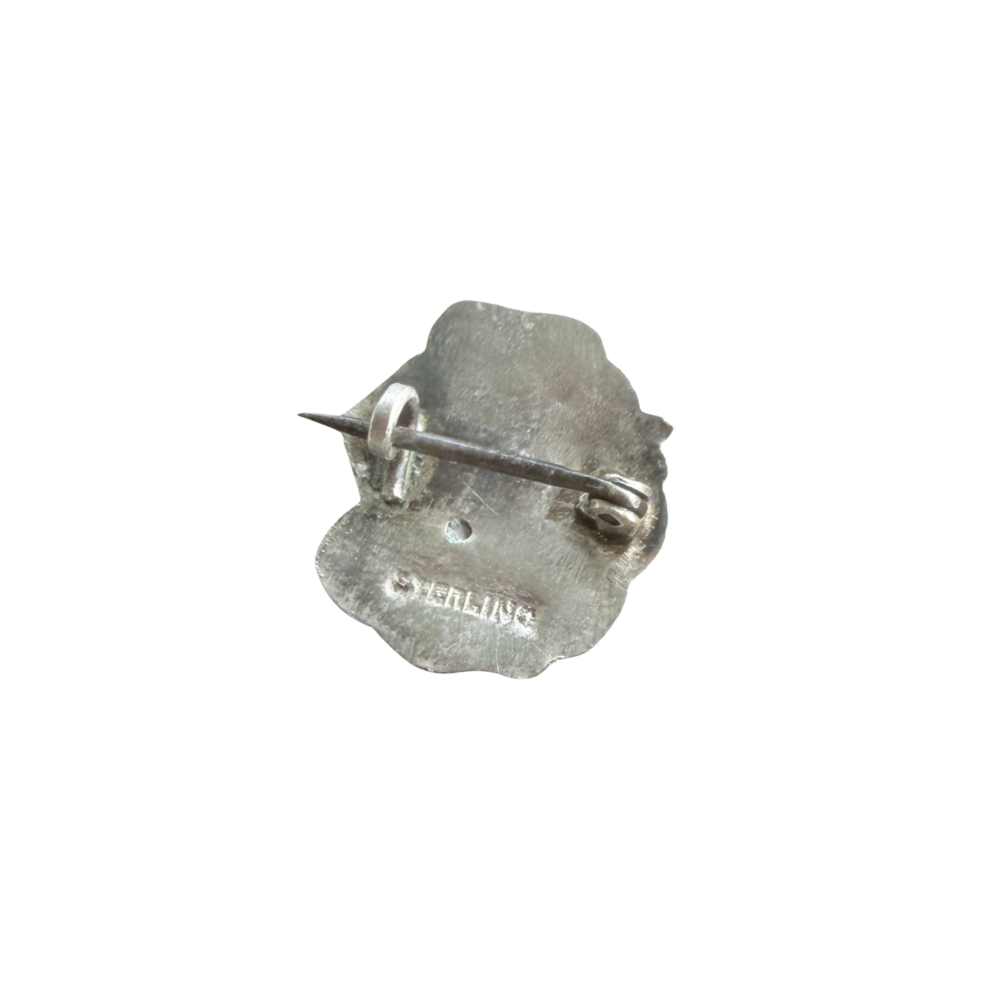 Small Sterling Silver Art Nouveau Period Brooch Silver brooch on a white background Silver brooch with 'STERLING' marking on a white background back view of Small Sterling Silver Art Nouveau Period Brooch